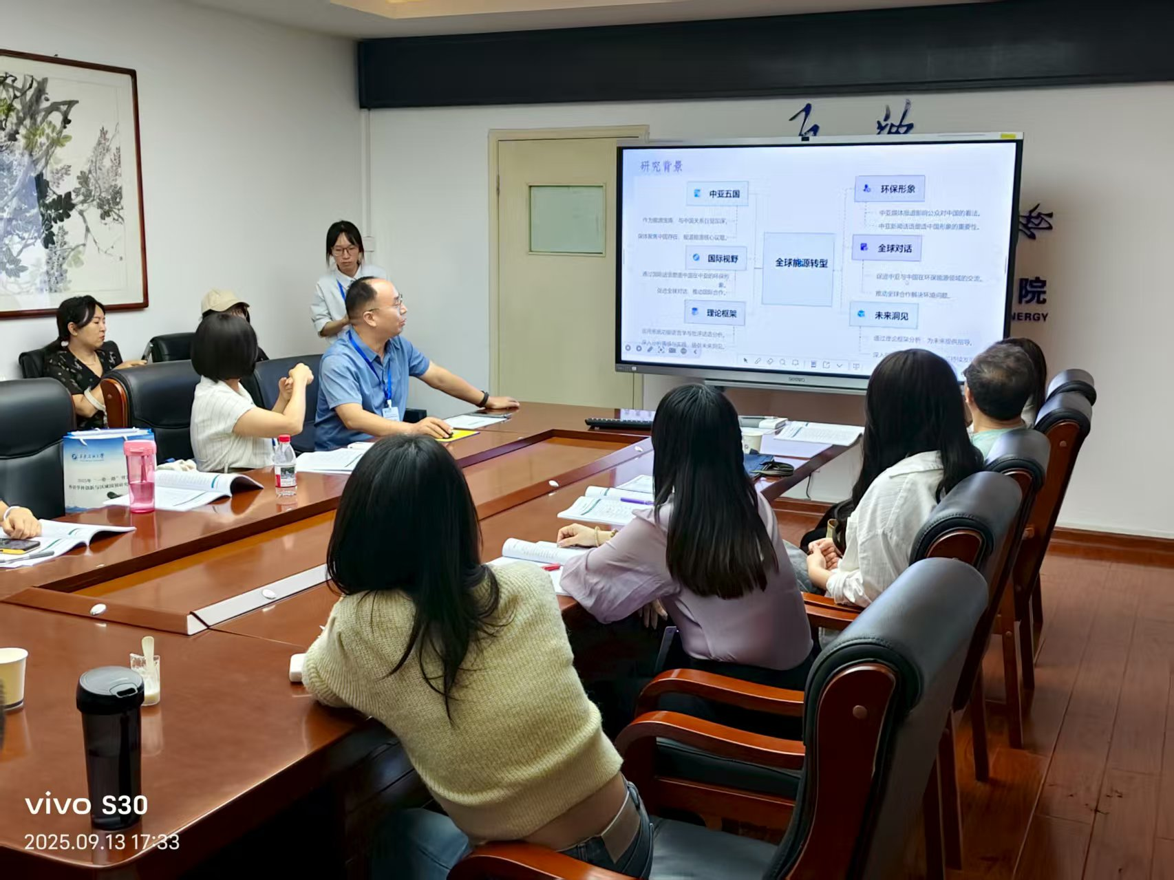 主旨报告环节结束后,会议同步开展了五个分论坛。与会专家学者师生围绕区域国别研究、翻译与语言学、外语与区域国别研究、国际传播等前沿议题,通过专题报告和互动研讨等形式,展开了热烈而深入的探讨与交流。我们MTI中心主任张军锋副教授在分论坛三“外语与区域国别研究”上作了题为“中亚五国涉华新闻话语情感分析”的压轴性发言,赢得主持人和与会师生的好评。