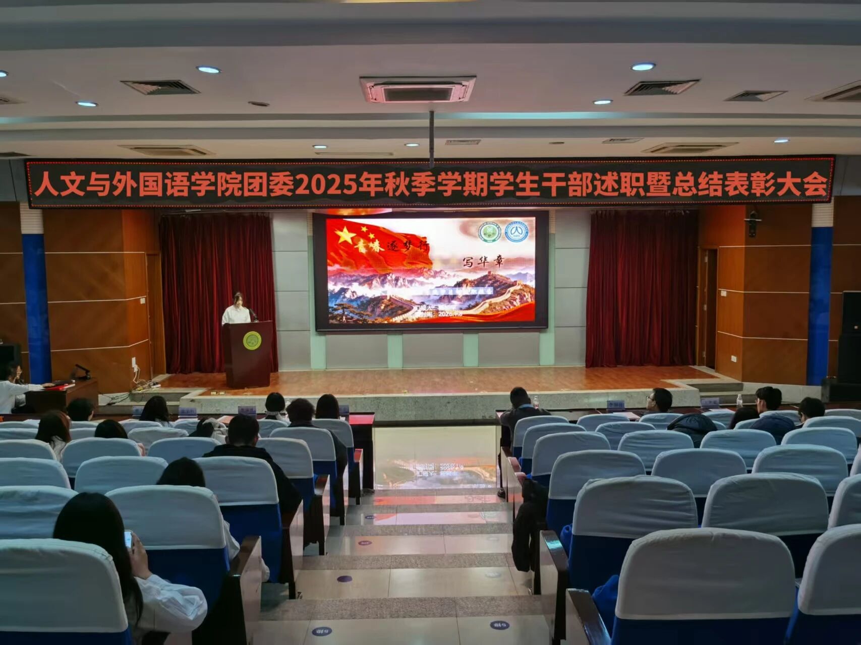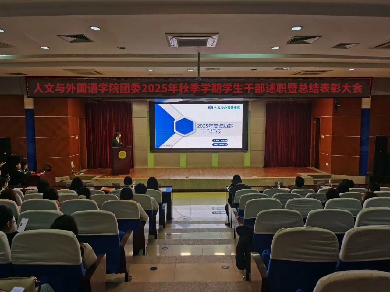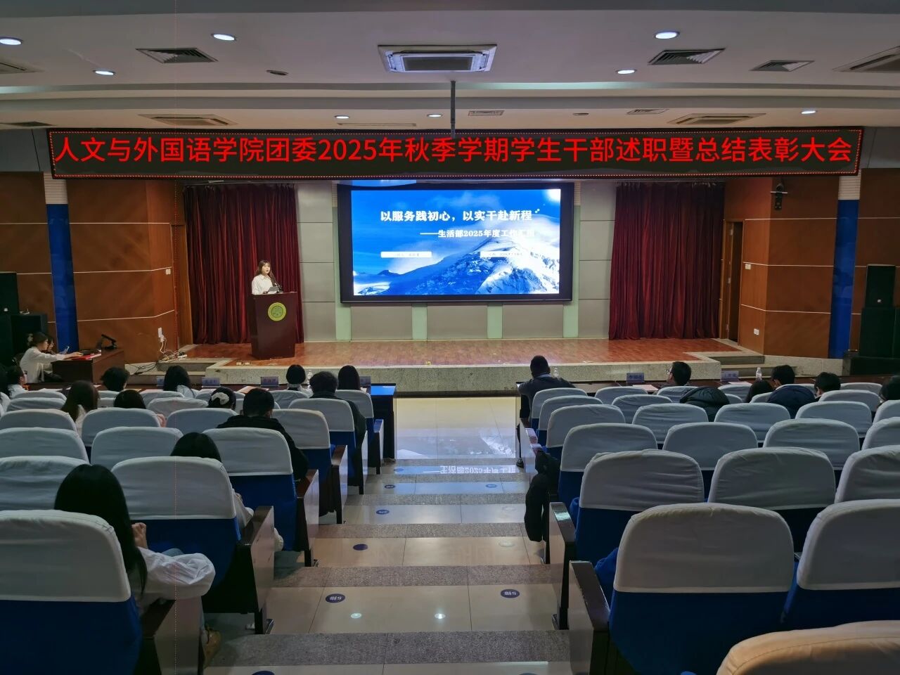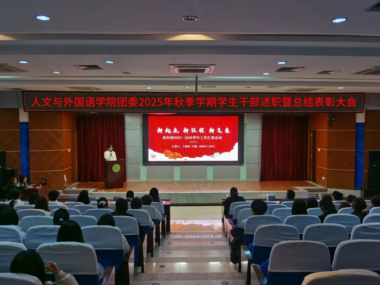 为进一步锚定工作方向,总结工作经验,切实提升学生干部工作能力与水平,1月8日晚,7003全讯白菜网团委在骊山校园图书馆二楼报告厅举办2025年秋季学期学生干部述职暨总结表彰大会,学院团委书记芮智刚,辅导员李银亮、王维蒙,各团支部干部、团委学生会全体学生干部参加了会议,学生会副主席李泳泽主持会议。