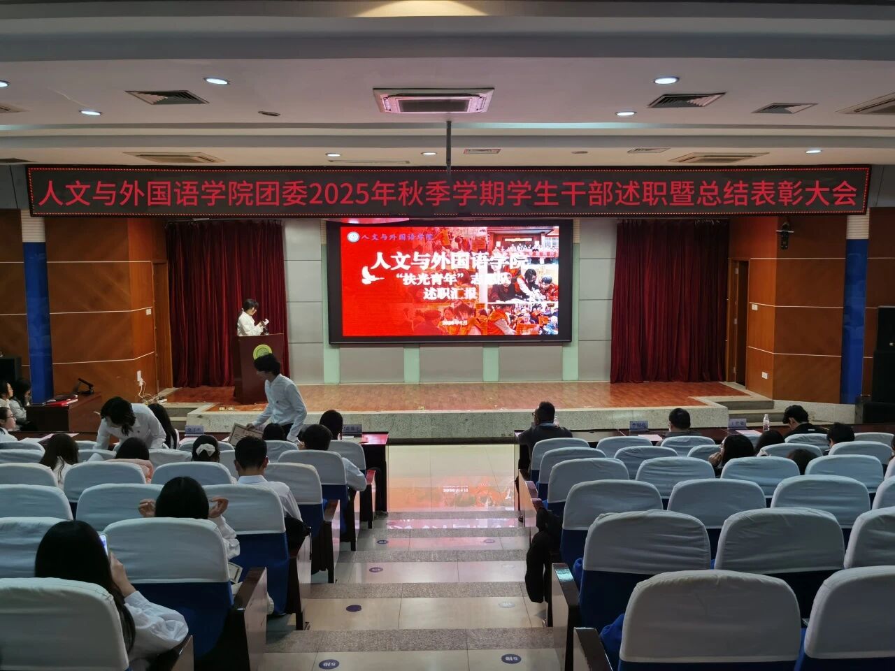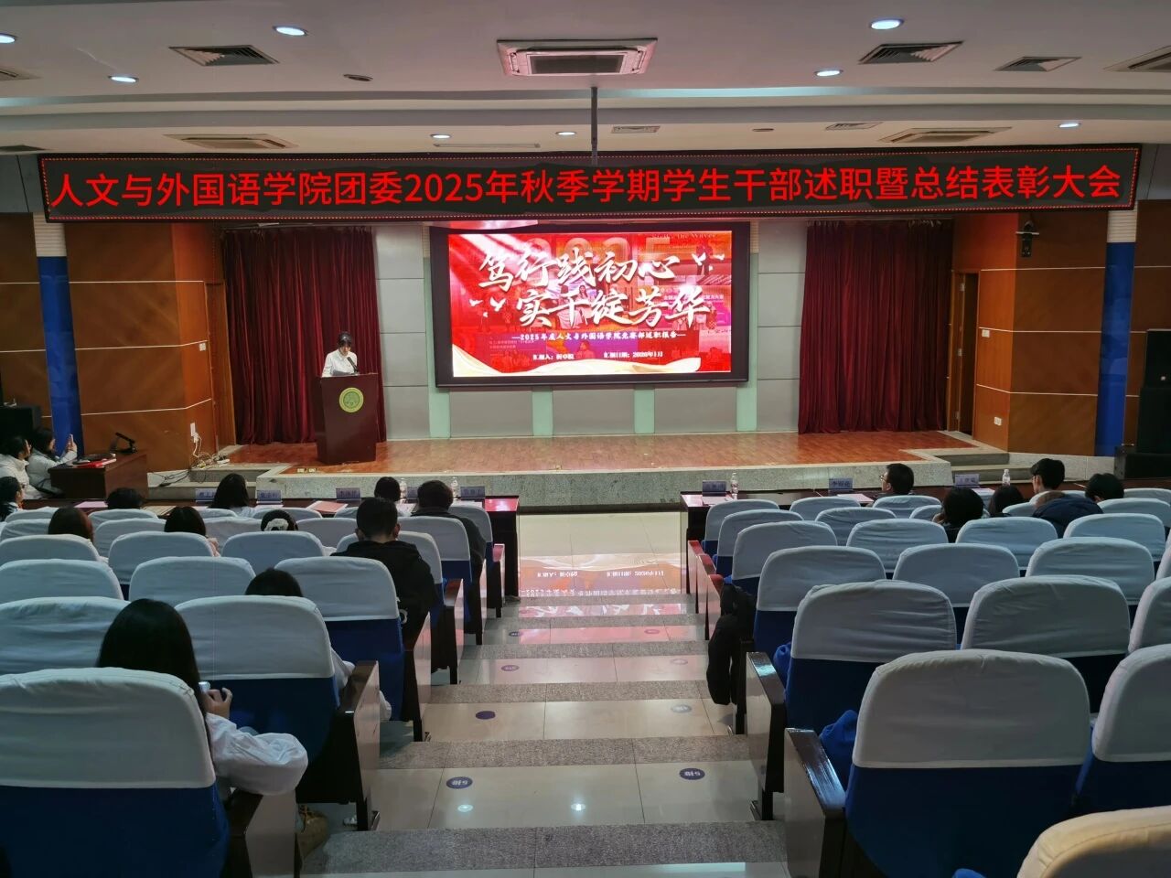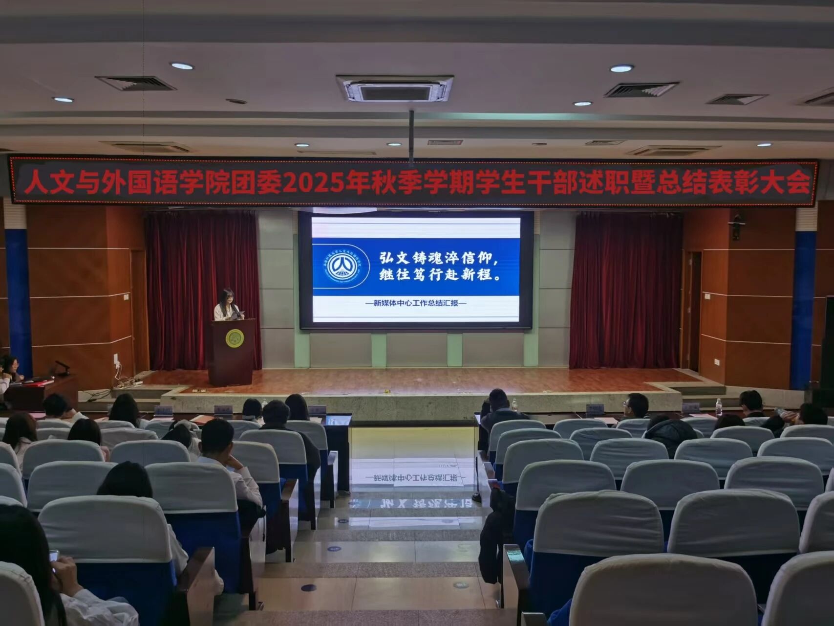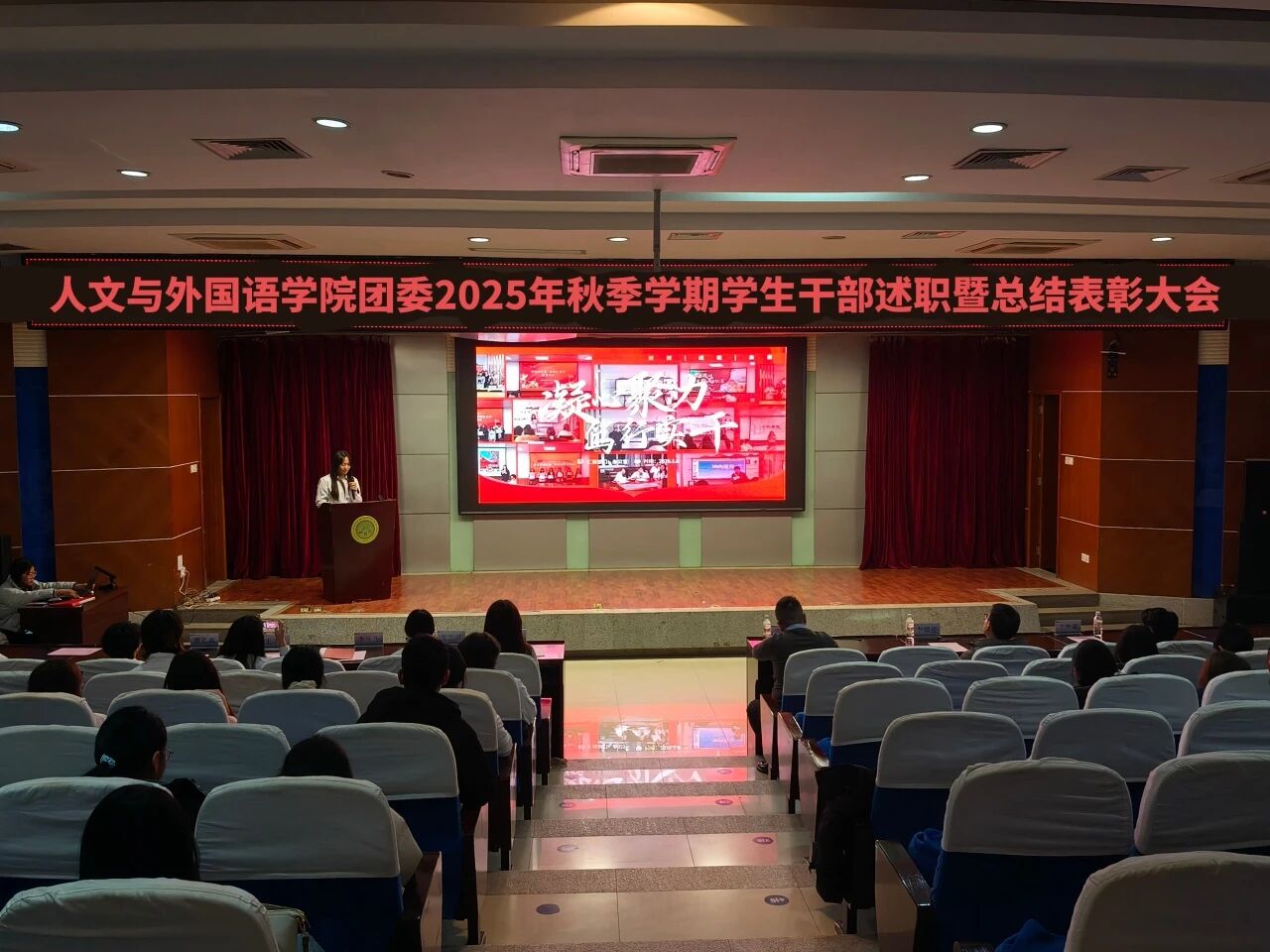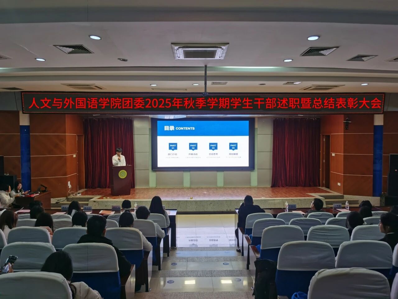 为进一步锚定工作方向,总结工作经验,切实提升学生干部工作能力与水平,1月8日晚,7003全讯白菜网团委在骊山校园图书馆二楼报告厅举办2025年秋季学期学生干部述职暨总结表彰大会,学院团委书记芮智刚,辅导员李银亮、王维蒙,各团支部干部、团委学生会全体学生干部参加了会议,学生会副主席李泳泽主持会议。