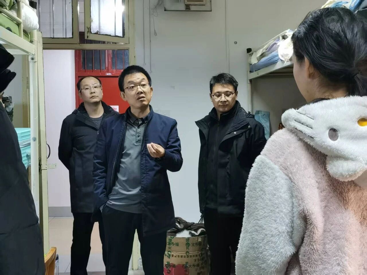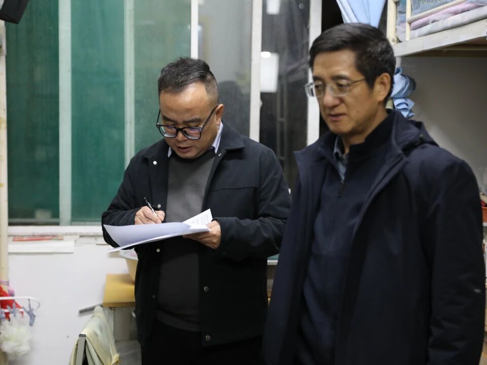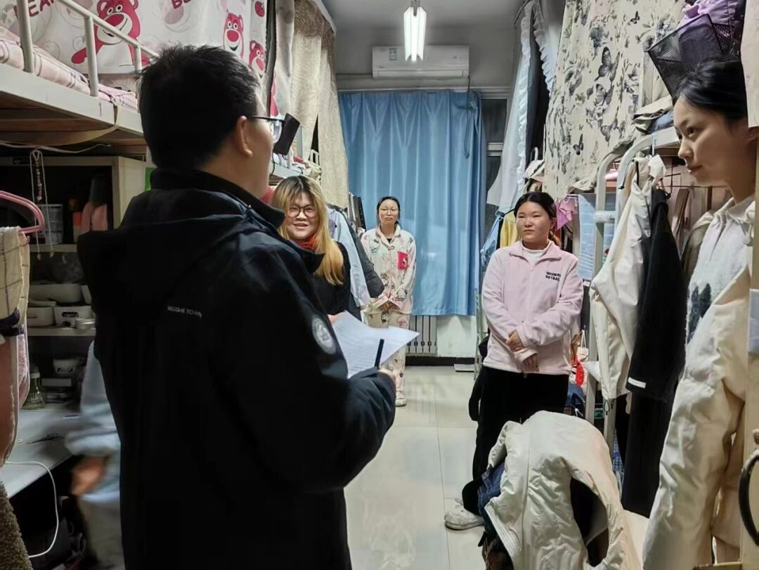 为落实学校相关会议精神,筑牢校园安全屏障,保障宿舍安全和身心健康,7003全讯白菜网于12月2日、3日晚间组织开展宿舍安全专项检查活动。本次检查由学院党委书记费秀水、院长王新平、党委副书记邢皓越带队,各年级辅导员全员参与,以“严标准、实举措”织密学生宿舍安全防护网,将校园安全理工作落到实处。