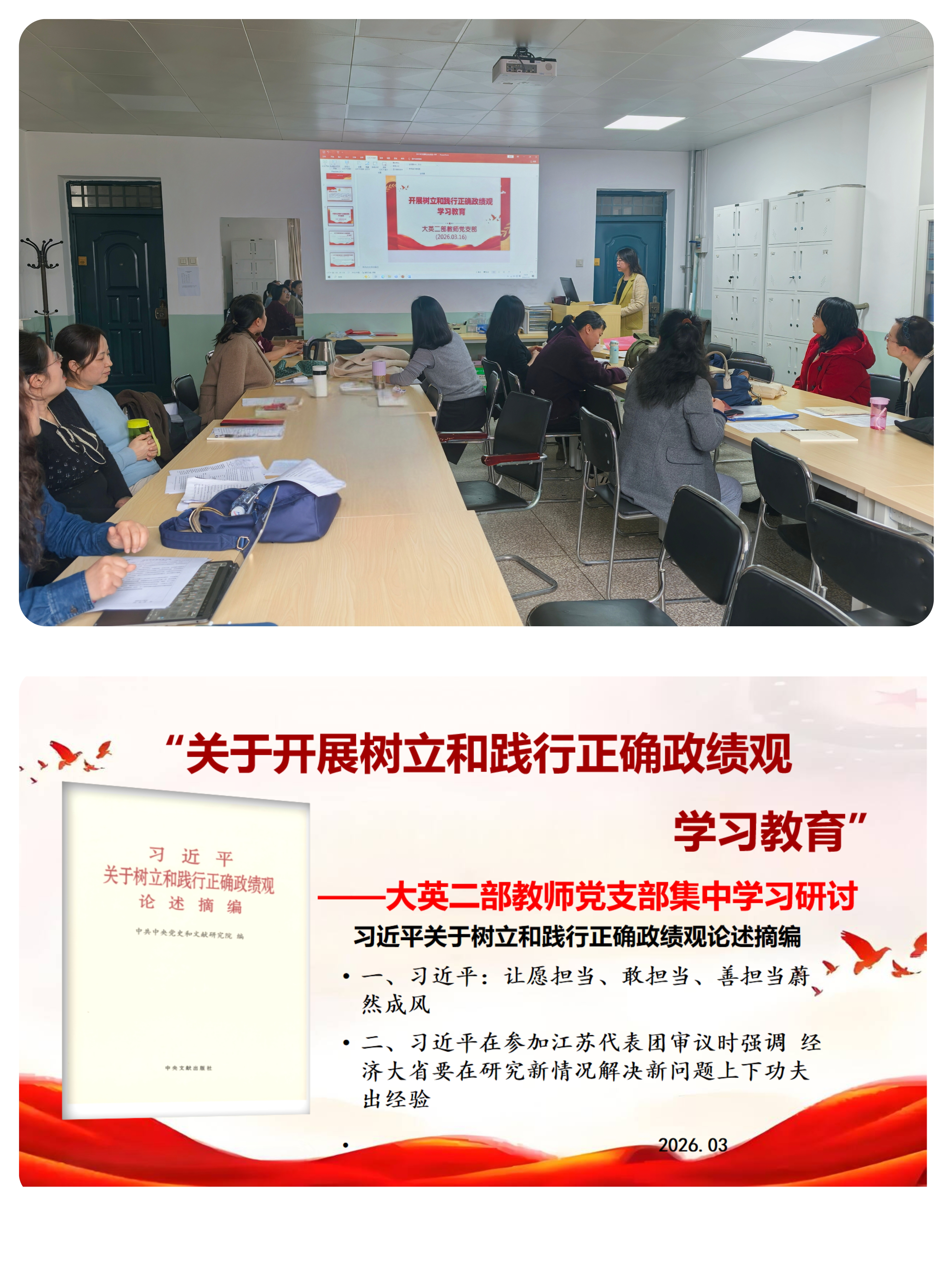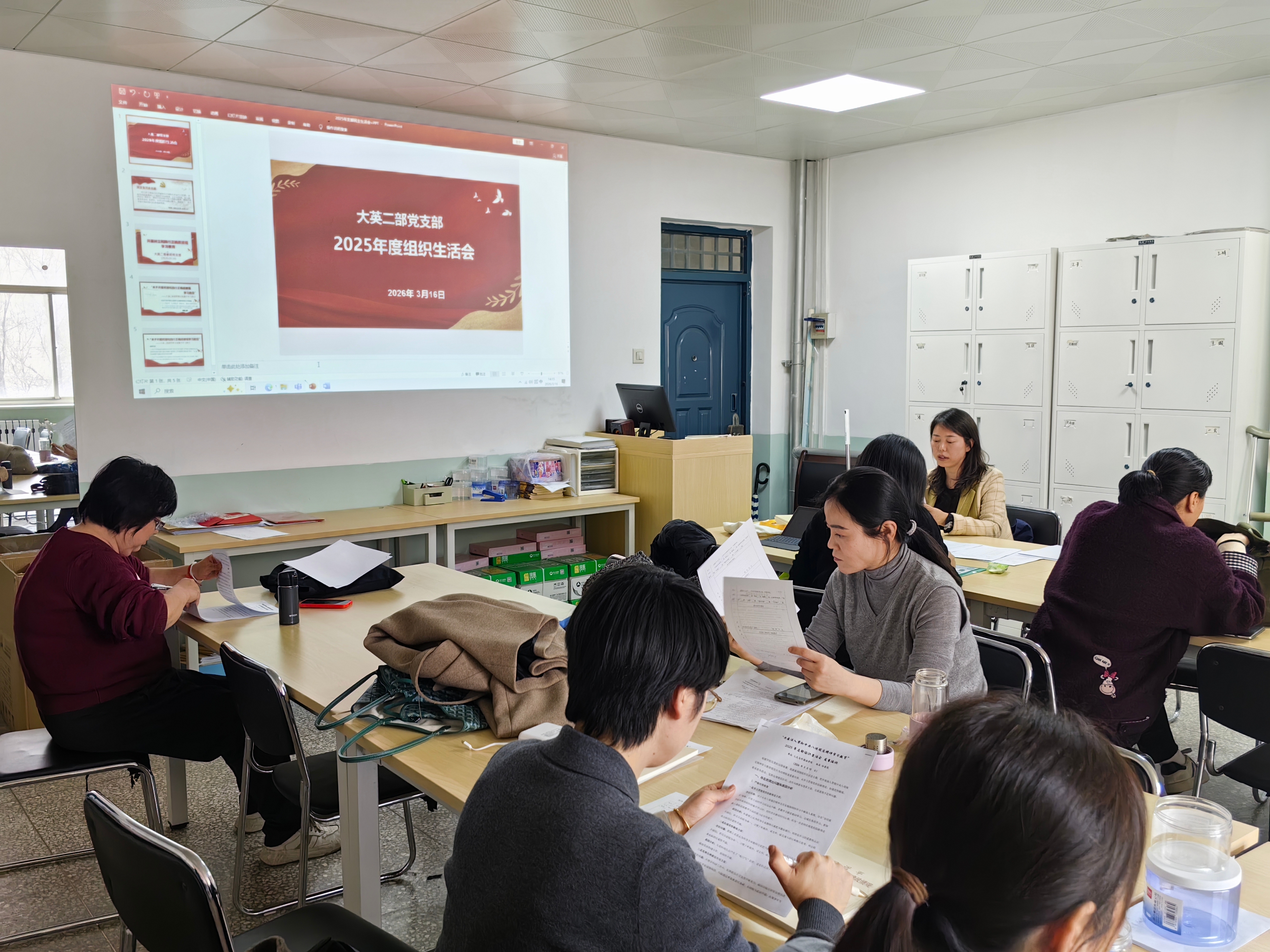 2026年3月16日,大英二部教工党支部在2教315教研室召开2025年度组织生活会,部署启动树立和践行正确政绩观学习教育。支部联系院长张辉到会指导,支部全体党员参会。